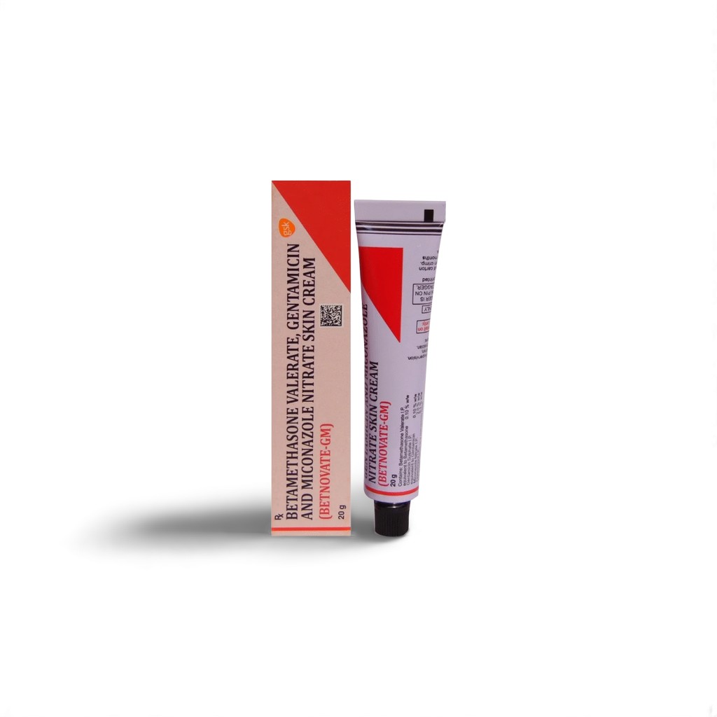 Betnovate GM Ointment merges a potent topical corticosteroid (Betamethasone Valerate 0.1%) with an aminoglycoside antibiotic (Gentamicin Sulfate 0.1%) and an imidazole antifungal (Miconazole Nitrate 2%). This triโ€action formulation is indicated for inflammatory skin disorders complicated by mixed bacterial and fungal infectionsโ€”such as tineaโ€associated eczemas, interdigital fungal intertrigo with secondary bacterial overgrowth, and impetiginized psoriasis. Betamethasone reduces inflammation and itching, gentamicin eradicates susceptible Gramโ€negative and some Gramโ€positive bacteria, and miconazole targets dermatophytes and Candida species, facilitating rapid lesion clearance and symptom relief.