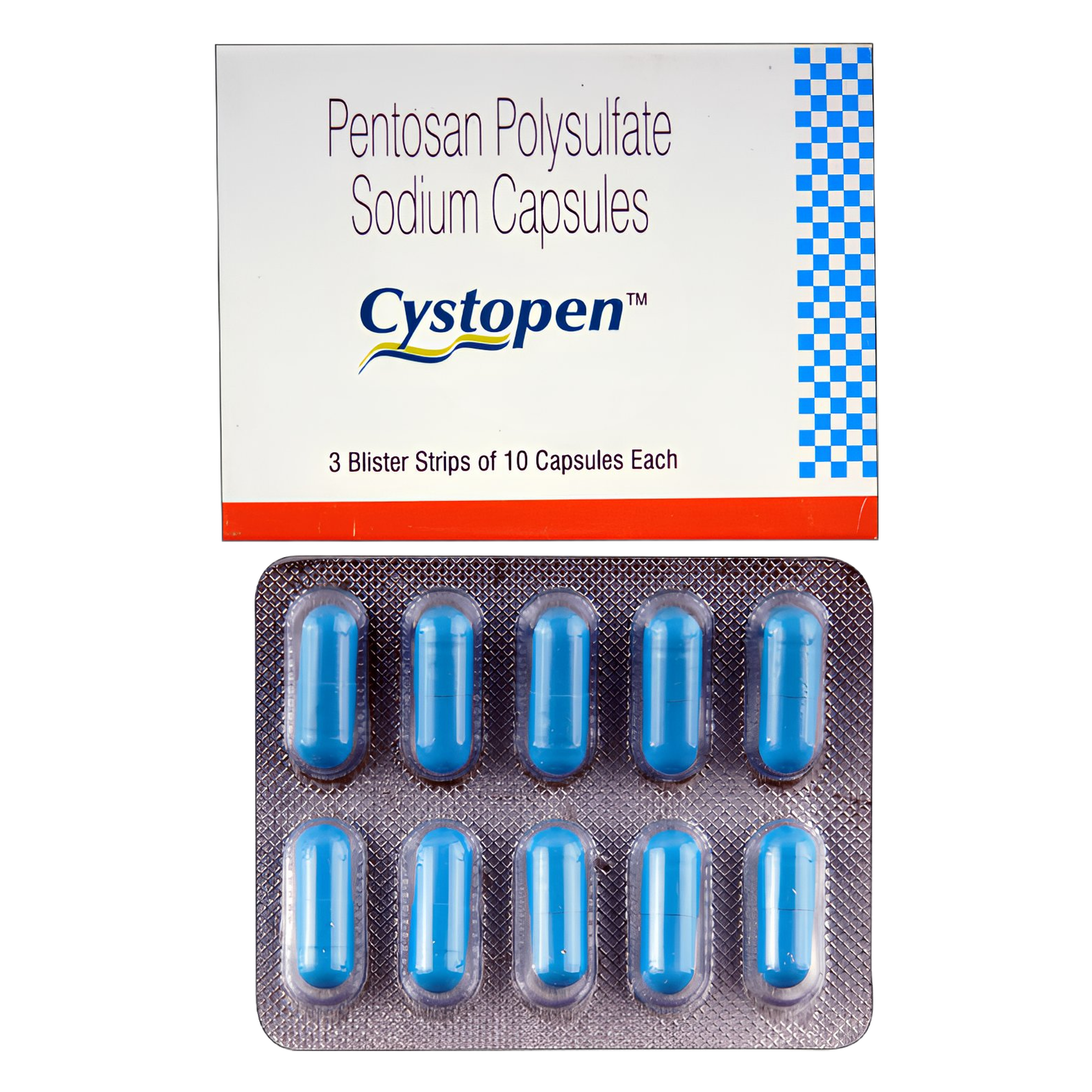 Manufactured by Sun Pharmaceutical Industries Ltd, Cystopen is a cost-effective generic alternative to Elmiron®, supplied in convenient strips of 10 capsules for flexible dispensing and storage.