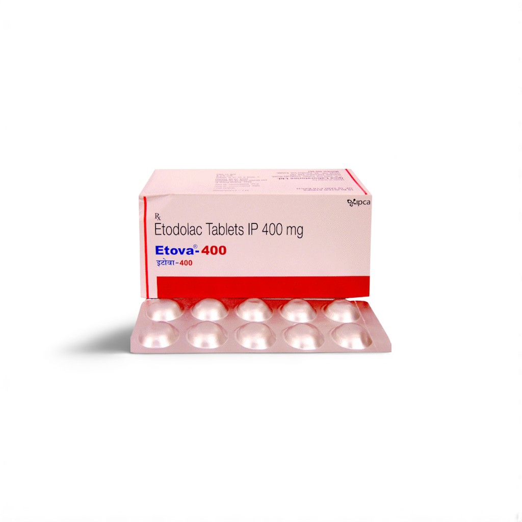 Etova 400mg is a non-steroidal anti-inflammatory drug (NSAID) manufactured by Ipca Laboratories Ltd, India. It contains Etodolac, an effective medication used to manage mild to moderate pain, especially in conditions such as osteoarthritis, rheumatoid arthritis, and musculoskeletal disorders.