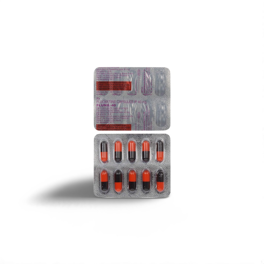 Flunil 40 mg, produced by Intas Pharmaceuticals Ltd, is a higher-strength antidepressant medication containing Fluoxetine Hydrochloride. It is commonly prescribed to treat major depressive disorder, obsessive-compulsive disorder (OCD), panic attacks, and bulimia nervosa. As a selective serotonin reuptake inhibitor (SSRI), it helps restore the balance of serotonin in the brain.