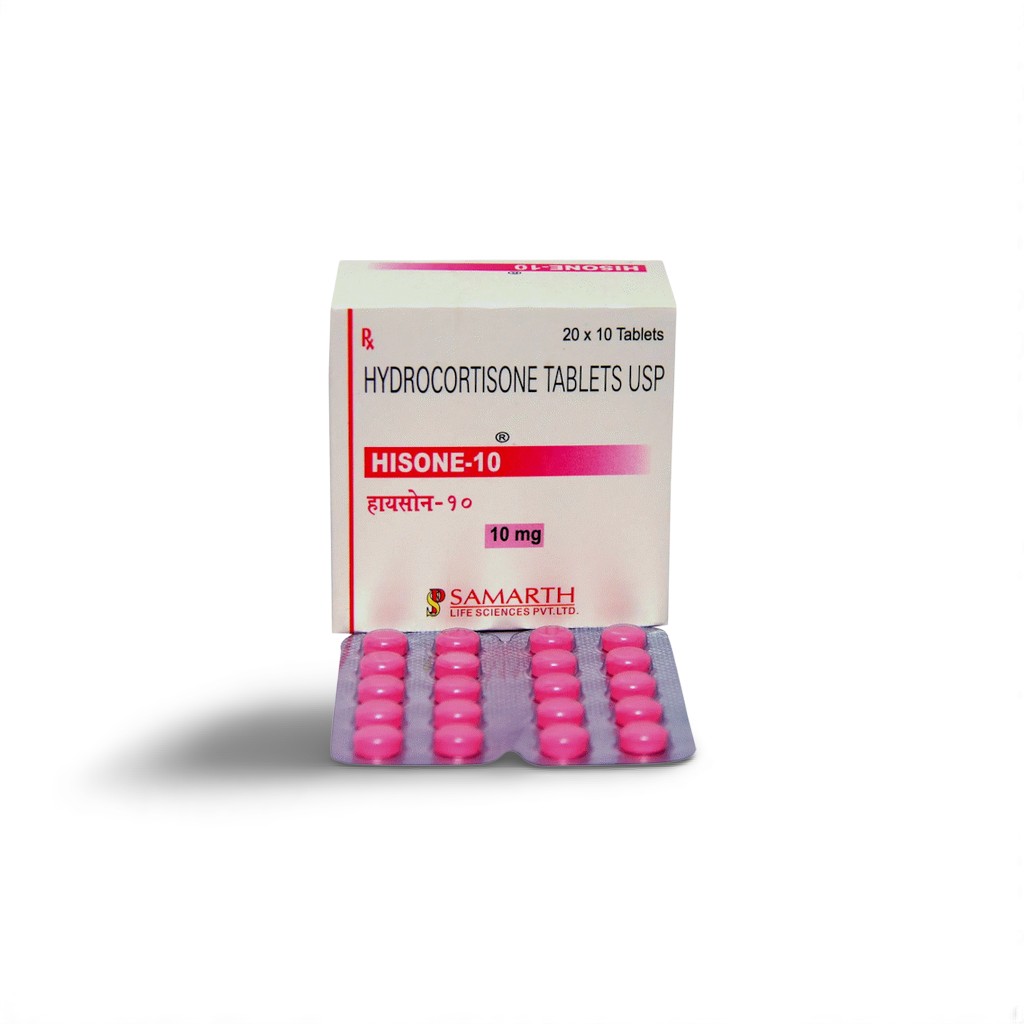 Hydrocortisone is the pharmaceutical equivalent of cortisol, the bodyโs primary stress hormone. Hisone 10mg offers a balance between lower and high-dose therapies, making it ideal for both maintenance regimens and escalation protocols. Manufactured by Samarth Pharma, it is widely prescribed and internationally available through regulated medical import.