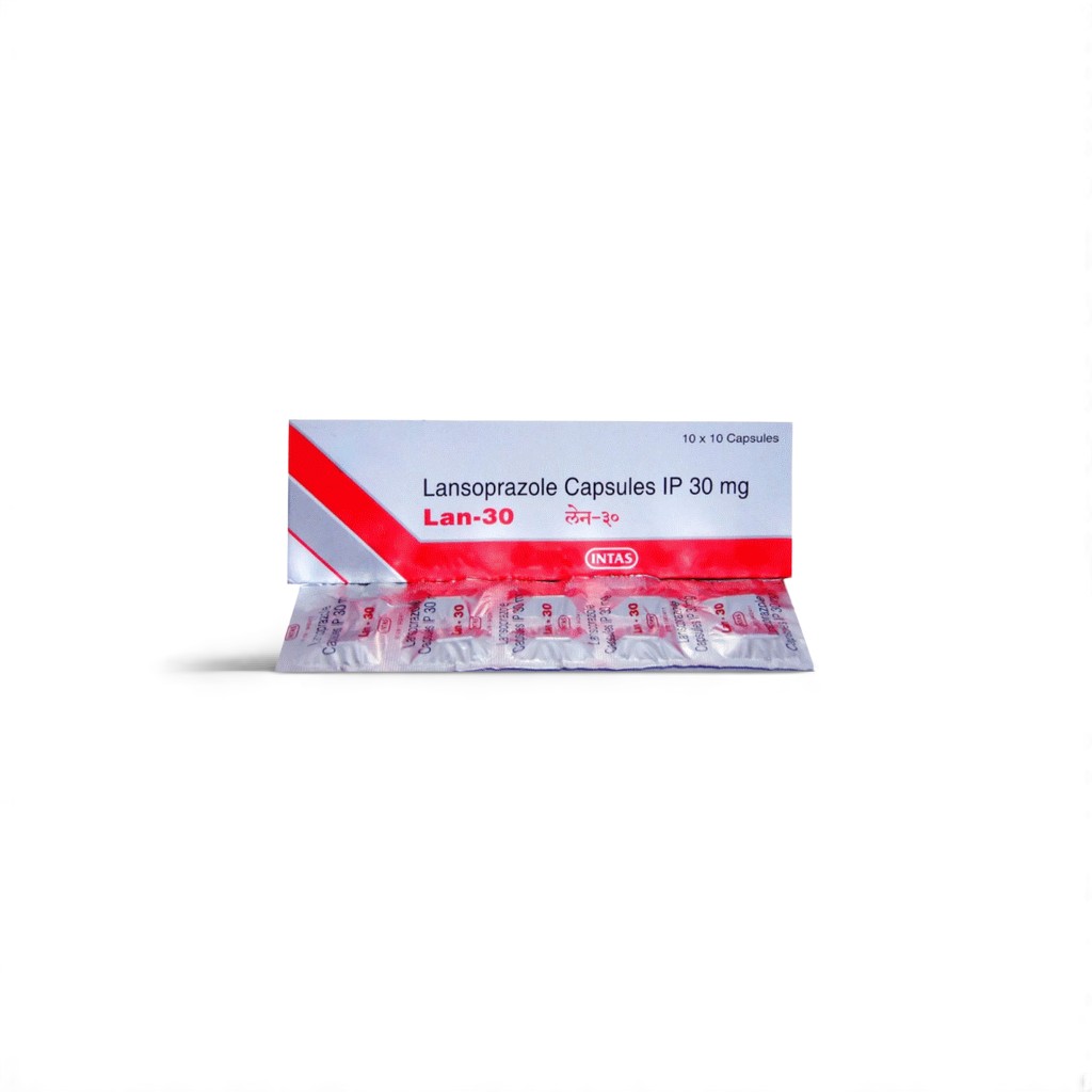 Lan 30mg is a PPI medicine used for GERD, ulcers, and acid reflux. Lansoprazole reduces stomach acid and is effective for healing and preventing damage to the digestive tract. It is a more affordable international alternative to Prevacidยฎ.