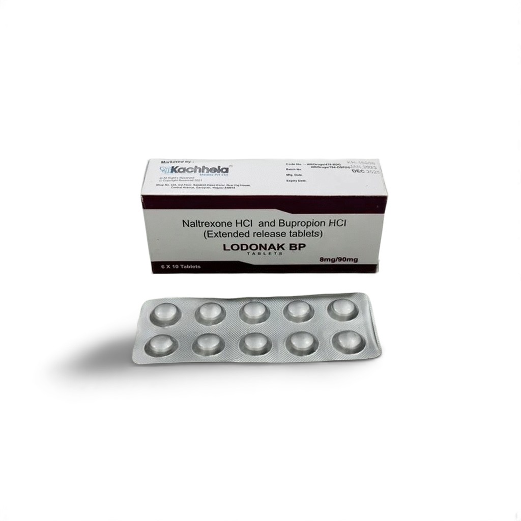 Lodonak BP is a dual-acting pharmaceutical developed by Kachhela Medex Pvt. Ltd. that contains Naltrexone 8mg and Bupropion 90mg. It mimics the formulation of the US FDA-approved brand Contrave, and is primarily used as part of a comprehensive weight-loss plan.