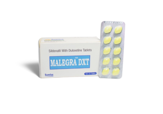 Malegra DXT, manufactured byย Sunrise Remedies Pvt Ltd, combinesย Sildenafil Citrate (100 mg)ย andย Duloxetine (30 mg)ย to treatย erectile dysfunction (ED)ย andย premature ejaculation (PE). This unique dual-action tablet addresses both physical and psychological aspects of sexual health.