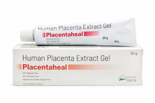 Placentaheal Gel is a topical placental extract formulation presented in a 20gm tube by Healing Pharma, India.