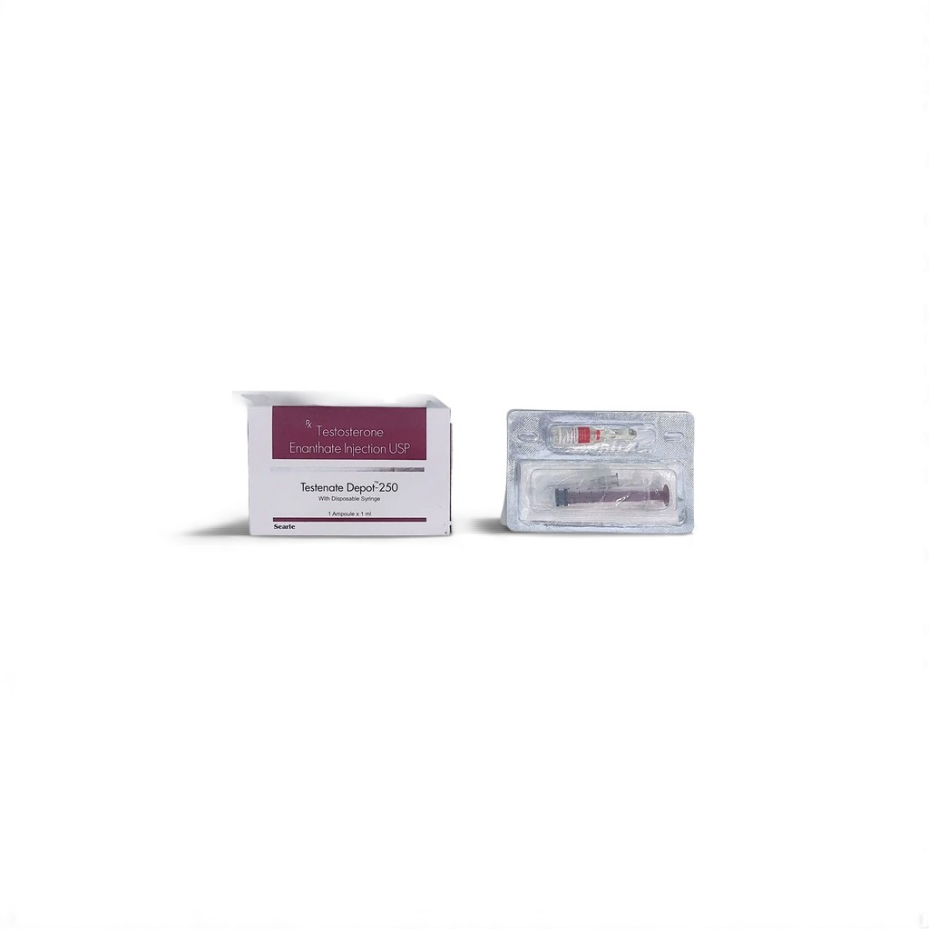 Testenate Depot 250mg Injection is a long-acting intramuscular form of testosterone enanthate, prescribed primarily for male hypogonadism and related hormone deficiency symptoms. Manufactured by Searle, a reputed pharmaceutical company in India, this injectable solution is widely used among TRT patients and bodybuilders for maintaining optimal testosterone levels.